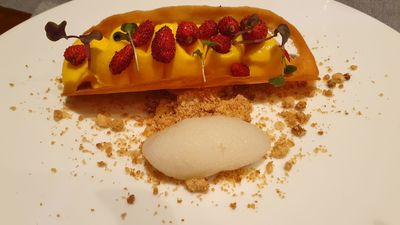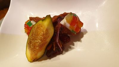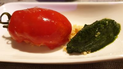 Вечером атмосфера меняется, на ужин она становится мягче со свечами, цветами на столах и приглушенным светом. Это время открыть для себя изысканную вегетарианскую кухню шеф-повара Мирко Молиони (Mirko Moglioni) во втором зале с большими полукруглыми диванами из черной кожи .