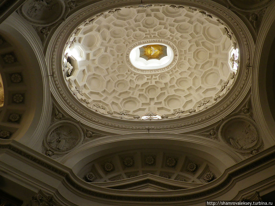 Удивительное волнообразное движение сочетается с прямотой и основательностью греческого креста, гармоничностью овала и изяществом многочисленных изображений веерообразных раковин в интерьерах храма.