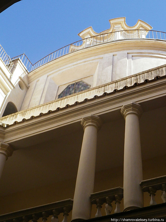 Еще одним шедевром стал дворик-колодец небольшого монастыря владевшего храмом. Та же чистота и совмещение волнообразных линий, тот же задор и изящество.