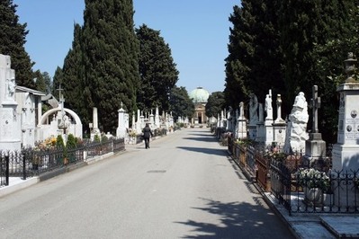 Это было в последний день нашего пребывания в Италии.Мы взяли велосипеды на прокат и ,по карте сверяя навигацию, поехали.Кладбище нашли быстро, а вот могилу искали довольно долго.Дело в том, что мы ожидали увидеть пышный склеп в лучших традициях итальянских семейств.Какие великолепные надгробия мы не увидели!
