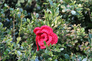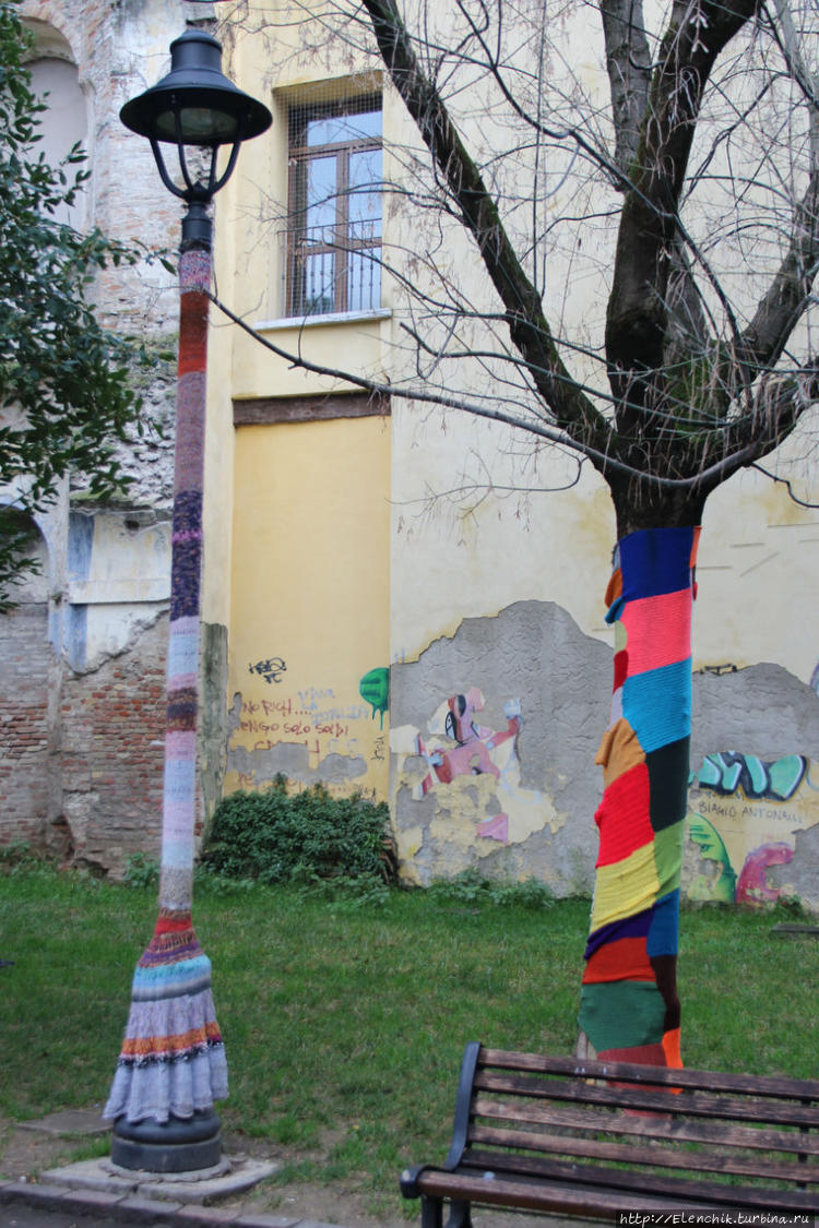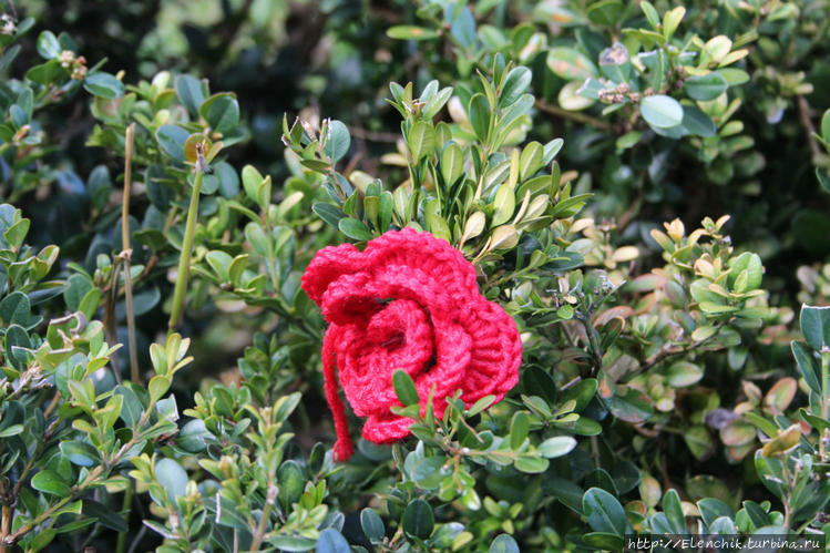 Дальше гуляем по улочкам, встречаем необычный парк где все деревья наряжены в вязаные свитерочки, а уличные фонари одеты в юбочки, даже на кустиках цветочки