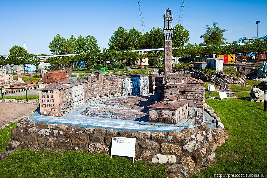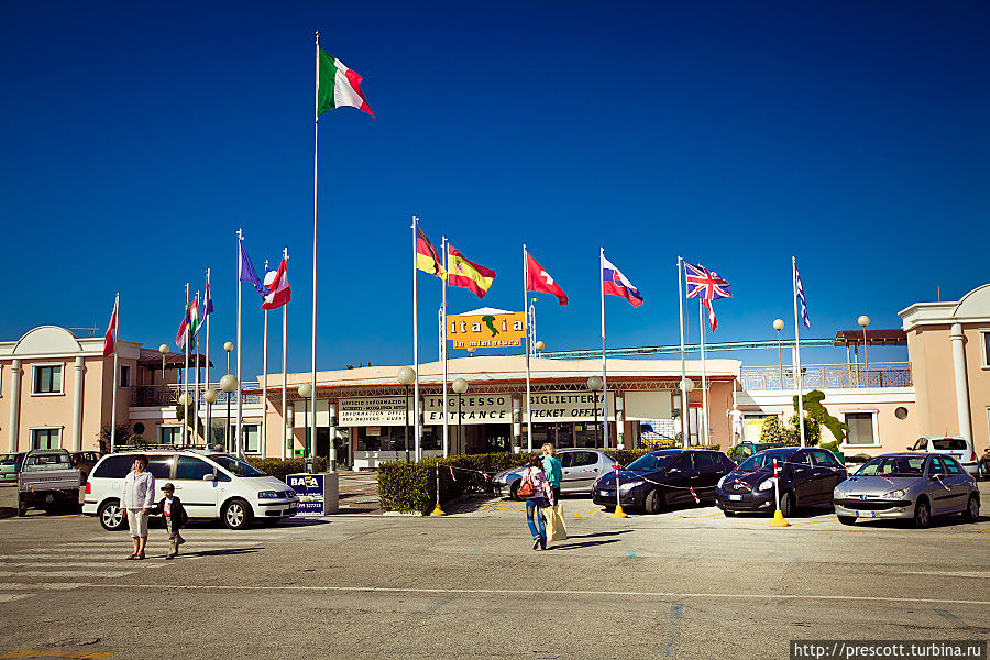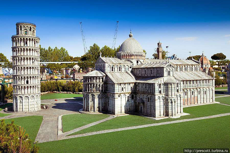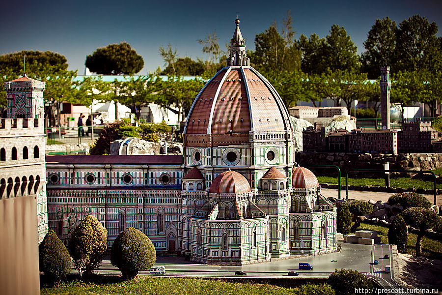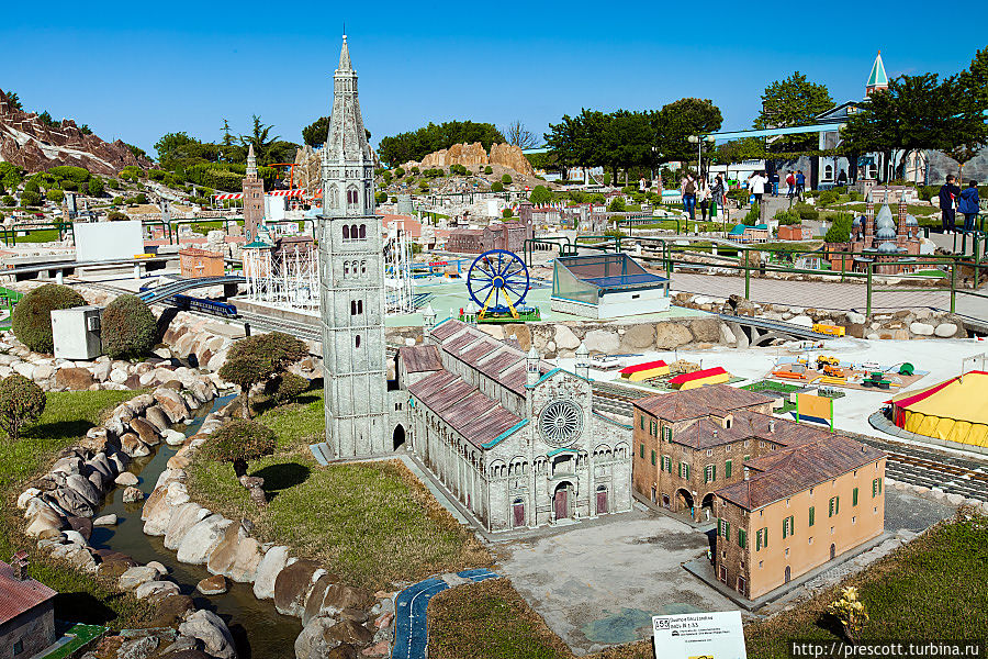 В парке можно увидеть Колизей и Пизанскую башню, миланский театр «Ла Скала», знаменитые соборы и фонтаны, венецианские каналы и другие итальянские достопримечательности.