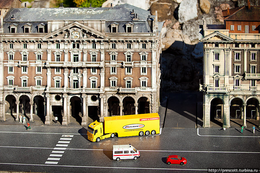 Помимо итальянских памятников архитектуры здесь можно посмотреть достопримечательности 13 европейских стран: Англии, Голландии, Испании, Португалии, Австрии, Бельгии, Германии, Дании, Греции, Ирландии, Франции, Югославии, Швейцарии.