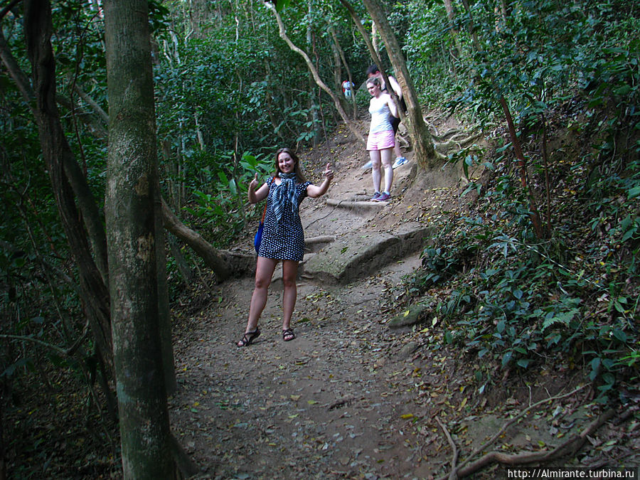 Подъем на Сахарную голову, сначала своими ножками на гору поменьше, потом на фуникулере. Можно было и два раза подняться на фуникулере, но мы решили сами пробраться сквозь джунгли. Во-впервых, можно немного денег сэкономить, во-вторых, так интересней). Причем на первый подъем ведут две дороги, одна короткая и крутая, а другая — более длинная, для пеших прогулок. Так вот, часть из нас, кто пошел по длинной, повернули на тупике и пошли обратно вниз.