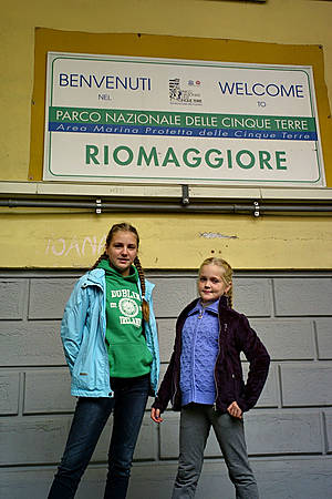 Поезд от Ла Специи до Риомаджоре идёт всего навсего 7 минут, и вот прибываем в на станцию, которая находится прямо в ущелье под скалой. Выйдя из неё, по ходу движения, не забываем отметиться: "Киса и Ося здесь были"