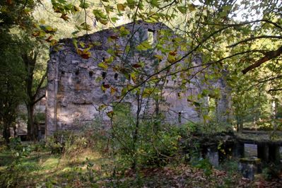 Останки сгоревшей в 1956 году госдачи похожи на затерявшийся в первобытных лесах большой каменный дворец. Наверное, также выглядят останки буддистских храмов где-то в джунглях Камбоджи или Мьянмы...