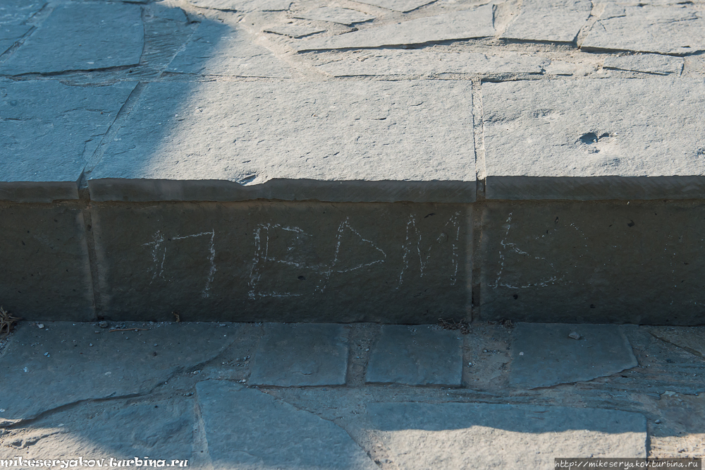 При виде ступенек мысли о возрасте крепости затираются раздумьями о том, что Родос активно продаётся на российском рынке массового туризма. Апофеоз успеха – найти свой город. А если он не находится – то без петроглифов некоторые туристы никак не обходятся. Потомки древних греков должны знать, что Гена и Вован из Нижнего Тагила – вовсе не мифические персонажи.