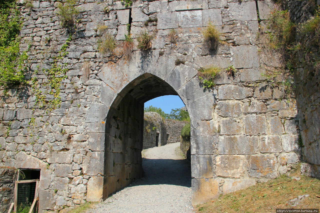 После преодоления ворот нападающие попадали в укрепленную рампу. Это узкая дорога, окруженная высокими стенами. Стена, примыкающая к замку являлась крытой галереей. Рампа заканчивается артиллерийской башней и монументальными воротами, ведущими в нижний двор.
