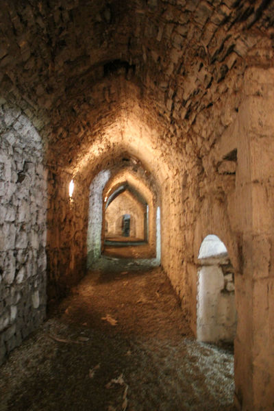 Галереи были построены в XV веке. Прямые и узкие проходы, протяженностью 60 метров, имели сводчатый потолок и бойницы для защиты рампы. Имели выход во внутренний двор.