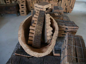 От посадки саженца до первого урожая пробки проходит 70 лет. Сначала снимают первый слой коры, затем через 10 лет — следующий (пробка из этих двух слоев идет на крошку для панелей и пр). И только третий слой уже подходит для изготовления бутылочных пробок.