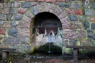 В городе есть и свой святой источник, располагается он за Роскильским собором. Источник уходит под землю на глубину 11 метров. Скважину обнаружили в 1834 году. При расчистке тут было найдено множество осколков керамических кувшинов и прочих сосудов 1300-х гг. Это говорит о том, что люди и ранее знали о существовании источника и активно им пользовались. Несмотря на всю святость источника, воду пить из него запрещено, о чем нас предупреждает табличка, установленная рядом с источником.