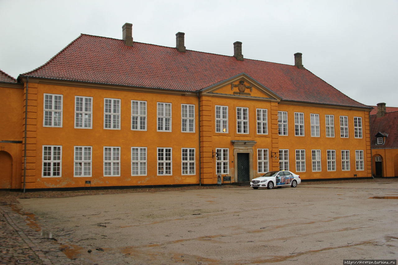 Желтый дворец. Дворец был построен в 1733 году в качестве резиденции короля Кристиана VI. Сейчас там располагается Музей современного искусства. Дворец соединен аркой с собором.