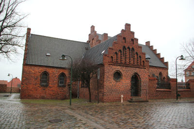 Каменную церковь возвели в 1500-х гг. Теперь же от нее осталась лишь башня, а руины самой церкви можно увидеть под землей. Церковь была разрушена во время Реформации, но башню было решено оставить в качестве городской башни. Она использовалась как часовая и колокольная.