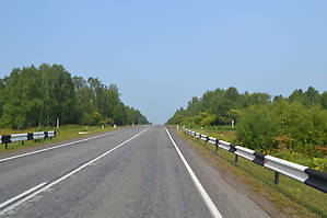 Наконец, проезжаем Ачинск, где дымная пелена становится не столь плотной, поэтому и двигаемся пободрее, тем более, что трасса М-53, во всяком случае до Кемерово, в очень приличном состоянии.