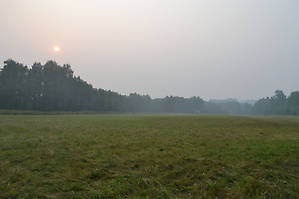 Как всегда, перед поездкой, сон – не берёт, поэтому выезжаем ещё затемно, часа в четыре утра. По-настоящему светло становится уже ближе к границе Хакасии и Красноярского края. Начиная со сворота с трассы М-54 на Ужур, начинает попахивать гарью, а дымка, которую поначалу можно было принять за туман, — очевидное последствие пожаров. Ближе к Назарово дым становится настолько плотным, что видимость — почти нулевая, что позволяет двигаться с минимальной скоростью. Местные любители русской рулетки, тем не менее, бодро идут на обгон, очевидно, рассчитывая на благосклонность своей судьбы.