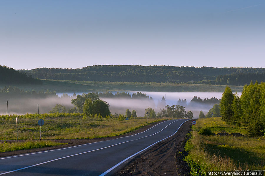 А на рассвете, после бессонной ночи, уже в Еловском районе Пермской области, наблюдали фантастические туманы.