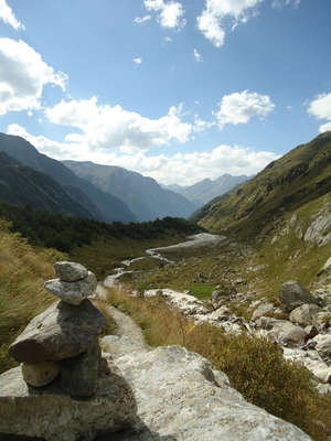 Но мы не могли так легко сдаваться, тем более обязаны были довыполнить партийное задание — забрать ещё две метеостанции в долине Адыл-Су. С первой АМС, примотанной скотчем (т.к. больших коробок в магазинах Терскола не нашлось) к моему рюкзаку, мы добрались до входа в нужное нам ущелье. Второй АМС, стоящей близ этого входа около кафе "Сакля", повезло меньше — блок записи данных бесследно исчез – серьёзная потеря. Слава Богу – единственная за всё наше путешествие в пятую Дверь, ибо последняя АМС оказалась совершенно целёхонькой. Итак, впереди – путь наверх, 12 км (ну или 7 км, если кто-нибудь подвезёт, но это надеяться не стоит) по горной тропе к конечной нашей цели – гляциологической базе МГУ, радушно принимающей меня третий год подряд. Несколько домиков, разбросанных у подножья ледника Джанкуат. Именно он и является здесь королём, который правит ледниковый бал. Все разговоры о нём – как метеорологов, гидрологов, так и непосредственно гляциологов. Первый раз я очутилась здесь 2 года назад, и с этого времени без памяти влюблена в горы. В этот раз мы пробыли здесь совсем мало – около 5-ти дней, всё это время жадно впитывали те силы, которые дарили нам чудесные горы вокруг. Купание в ледниковом Башкаринском озере и под холодным душем водопадов, подъём на ледник со своими метеорологическими целями, прогулки по моренам, готовка пирогов с самособранной малиной и черникой, собирание букетов из горных цветов (цветы – вообще моя страсть!)... Да что говорить, тут даже туалет (прошу прощения за подробности), который называется немного поэтически – "Эльсор", имеет вид на долину и Эльбрус. А утром иногда было настолько холодно, что даже Эльбрус не мог выйти без шапки. Конечно, зачаровывали здесь и прекрасные закаты, а затем – самые звёздные в моей жизни ночи, половину из которых мы провели в любовании на Млечный Путь, в мечтах о будущем и в обсуждении "серьёзных" жизненных проблем. Дыхание первой взрослой осени уже коснулось нас – в разговорах чувствовалась плохо скрываемая грусть. Настало время закрыть последнюю, пятую Дверь моего лета. Это получалось с трудом, ибо с собой в Москву, кроме собственных рюкзаков, мы (напомню, две девушки) тащили ещё аккумулятор весом в 12 кг, три АМС с металлическими треногами к ним. Не знаю, каким оказался суммарный вес поклажи, но в результате в ручной клади были наши рюкзаки и ещё пару флюгеров. "Мудрость – самая лёгкая ноша в пути". Нашему грузу далеко было до мудрости. Так нелегко в прямом смысле слова закрылась пятая Дверь. Рассказ про неё получился наиболее подробным.