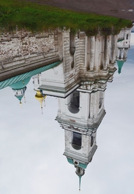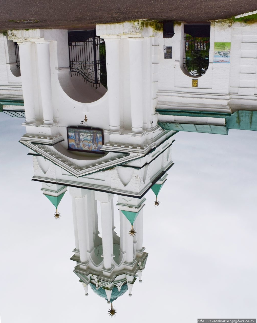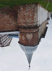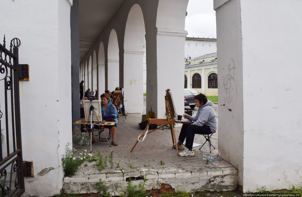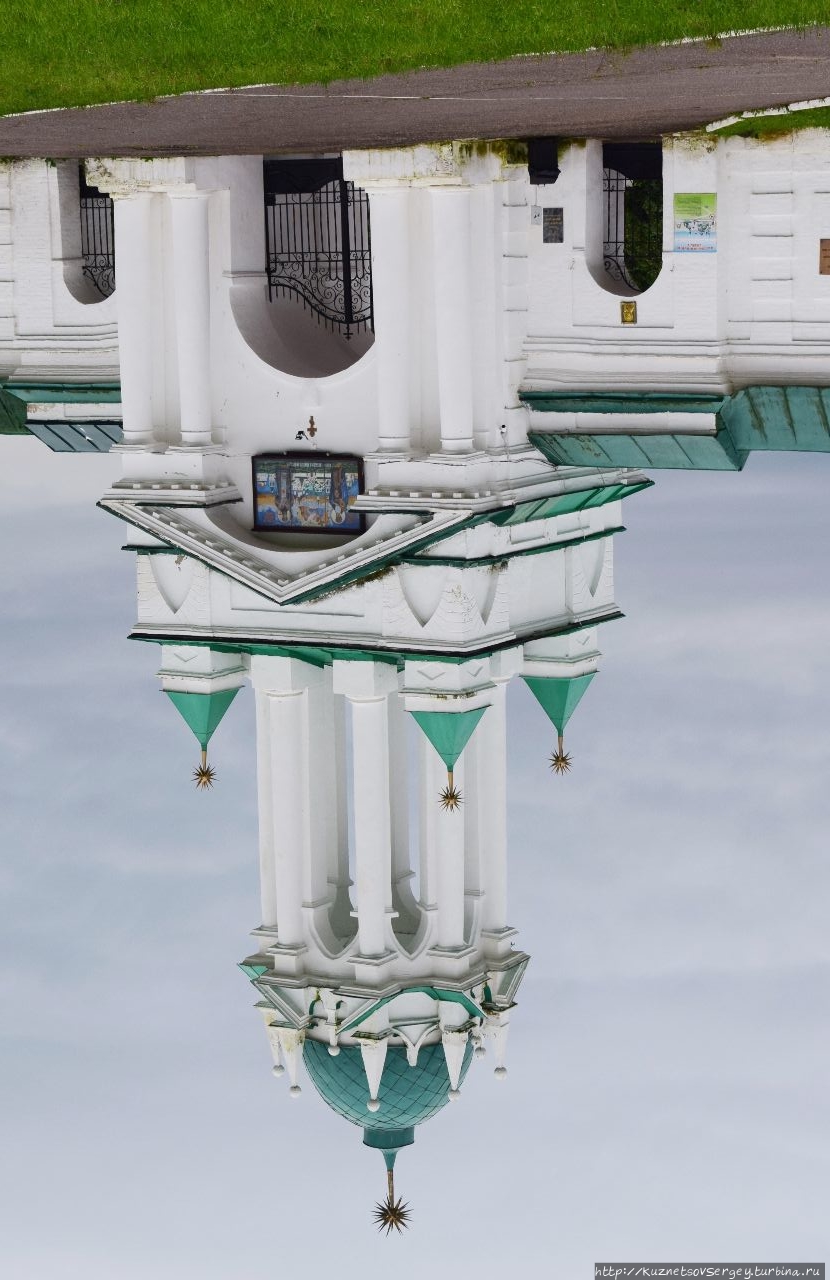 Эта церковь, одна из самых красивых в городе, находится у стен Ростовского кремля и Гостиного двора. Этим объясняется приставка к ее имени. Появилась она в конце XVII-го века. Причем красота ее во многом создается ее неухоженностью, которая ей не мешает. Так, я заметил целую группу художников, которые устроились в нише Гостиного двора, каждый из них выбрал свой ракурс для рисования, несколько человек рисовали именно эту церковь.