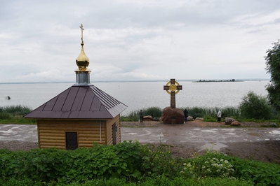 Четырехметровый крест установлен на огромный валун берегу озера Неро несколько лет назад в честь 1000-летия преставления князя Владимира. По преданию князь крестил в водах озера ростовчан.