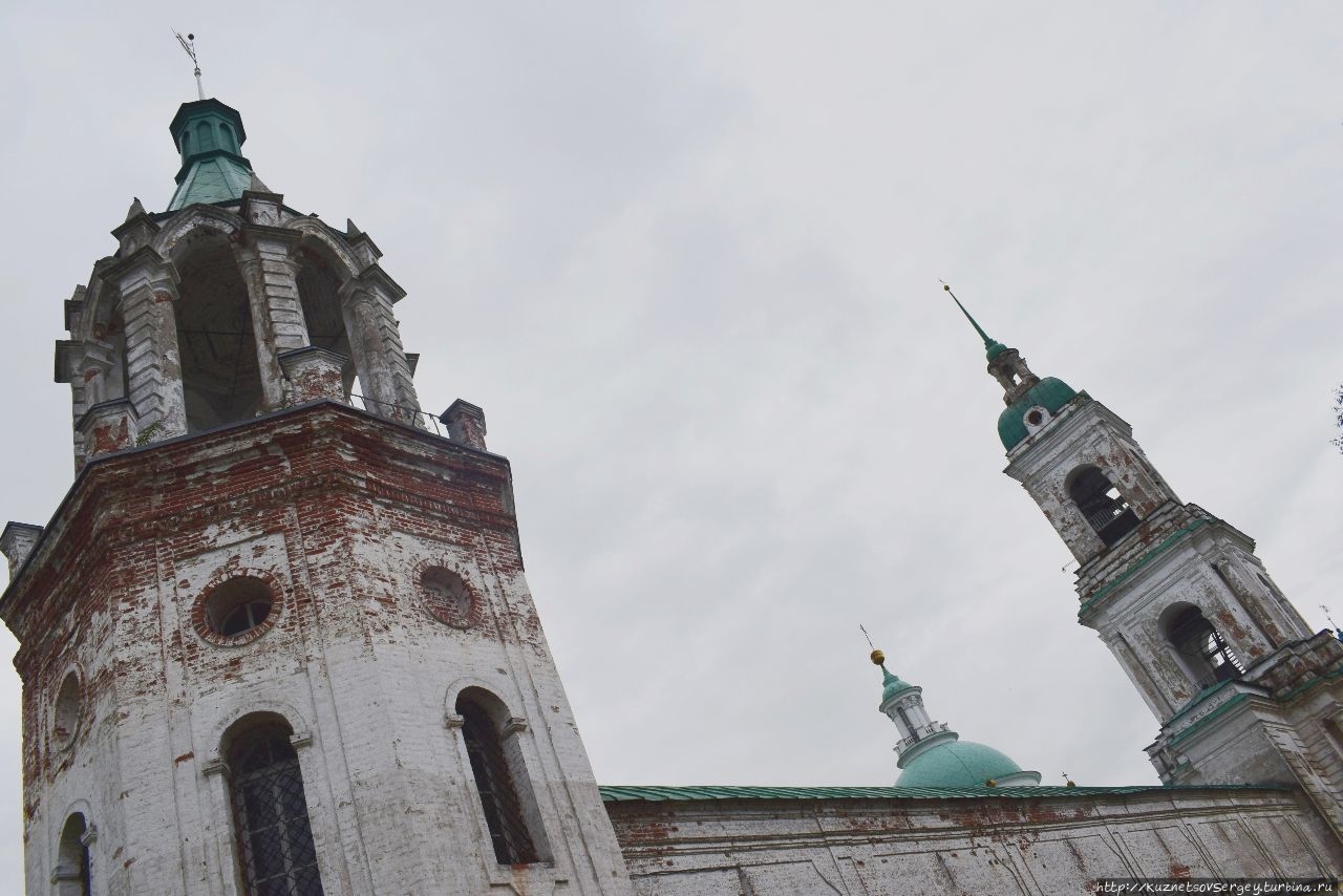 Нынешний храм возведен на крепостном валу в середине XVIII-го века в том месте, где когда-то засыпанная ныне река Пижерма впадала в озеро Неро. Здесь располагался княжеский дворец. Практически разрушенный в советское время храм, к сожалению, не восстановлен до сих пор… Кирпичное неоштукатуренное здание с обезглавленной колокольней взывает о помощи!
