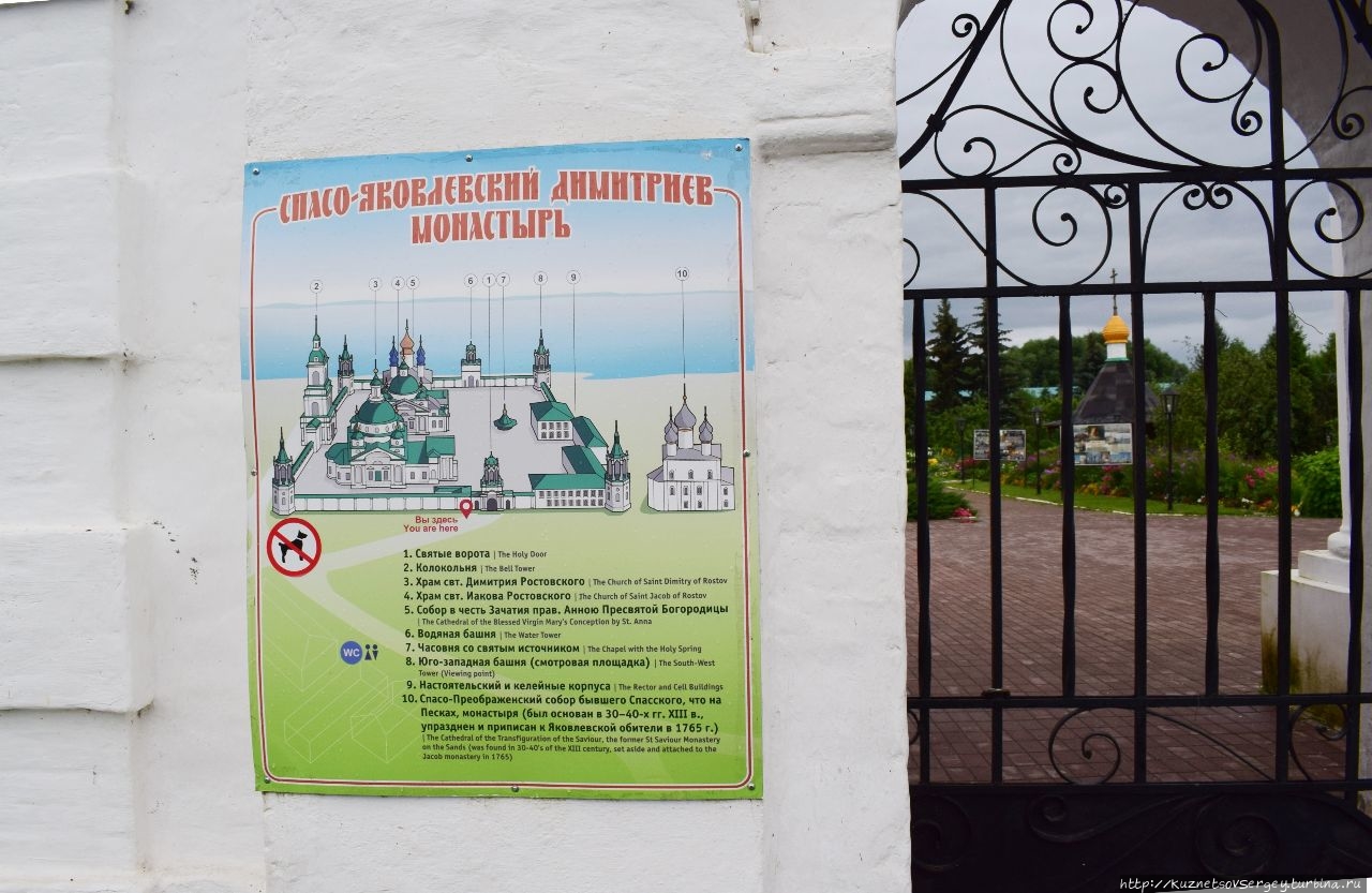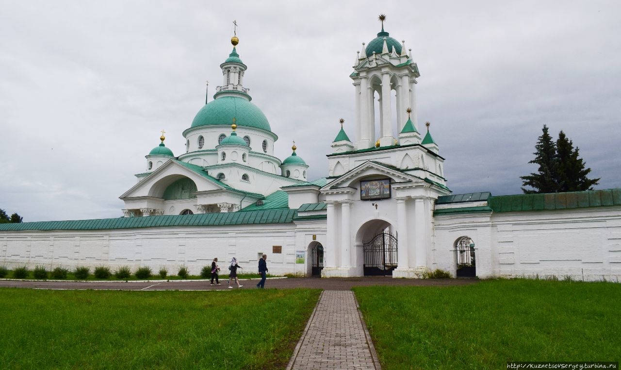 Монастырь находится на берегу озера Неро примерно в трех километрах юго-западнее Ростовского Кремля. На него открываются замечательные виды как со стороны озера, так и с приозерной набережной. Монастырь основан в конце XIV-го века епископом Иаковом. Главный собор монастыря – Собор Святой Анны. Здесь хранятся мощи причисленного к святым Иакова. Вторым собором стал Димитриевский собор. Здесь хранятся мощи святого Димитрия Ростовского. Сюда на богомолье приезжали практически все российские императоры. Уже в начале XX-го веке освящены пещерный храмы Воскресения Христова и Толгской иконы Божией матери.