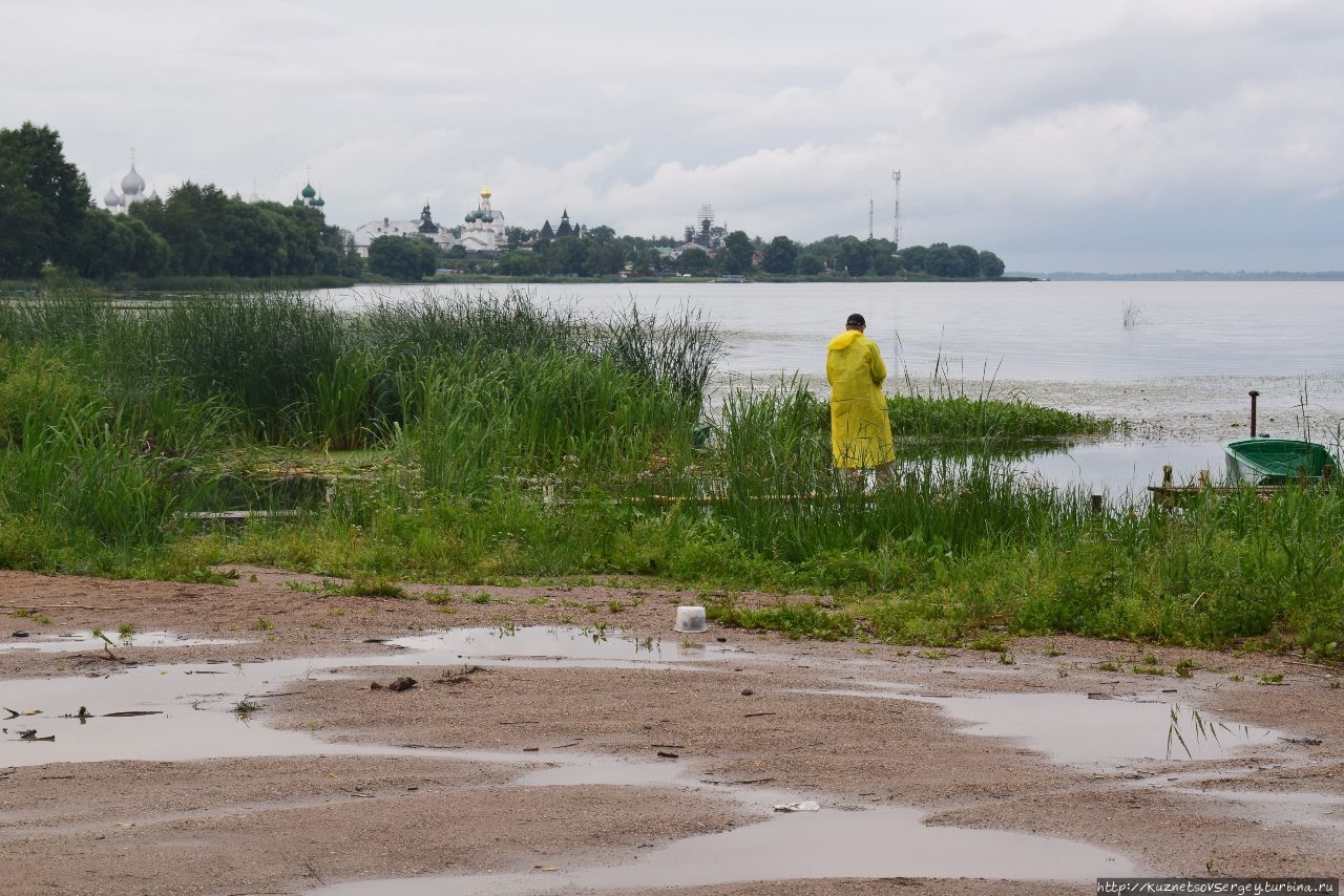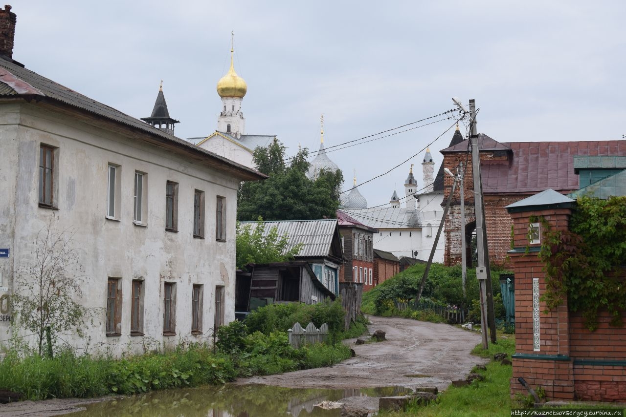 Однако, к сожалению, местные власти не оборудовали даже малый участок набережной, куда могли бы выйти люди от кремля и совершить прогулку. Грунтовая дорога в ямах и колдобинах обрамляет западный берег озера. Я поначалу думал, что можно будет пройти от кремля как до Спасо-Яковлевского монастыря (и это можно сделать), так и до Богоявленского Авврамиевого, так как они оба находятся на берегу озера. Но, не тут то было! Дороги до второго монастыря по берегу нет! Надо вернуться в город и пройти жилыми кварталами…