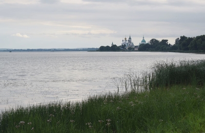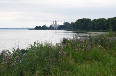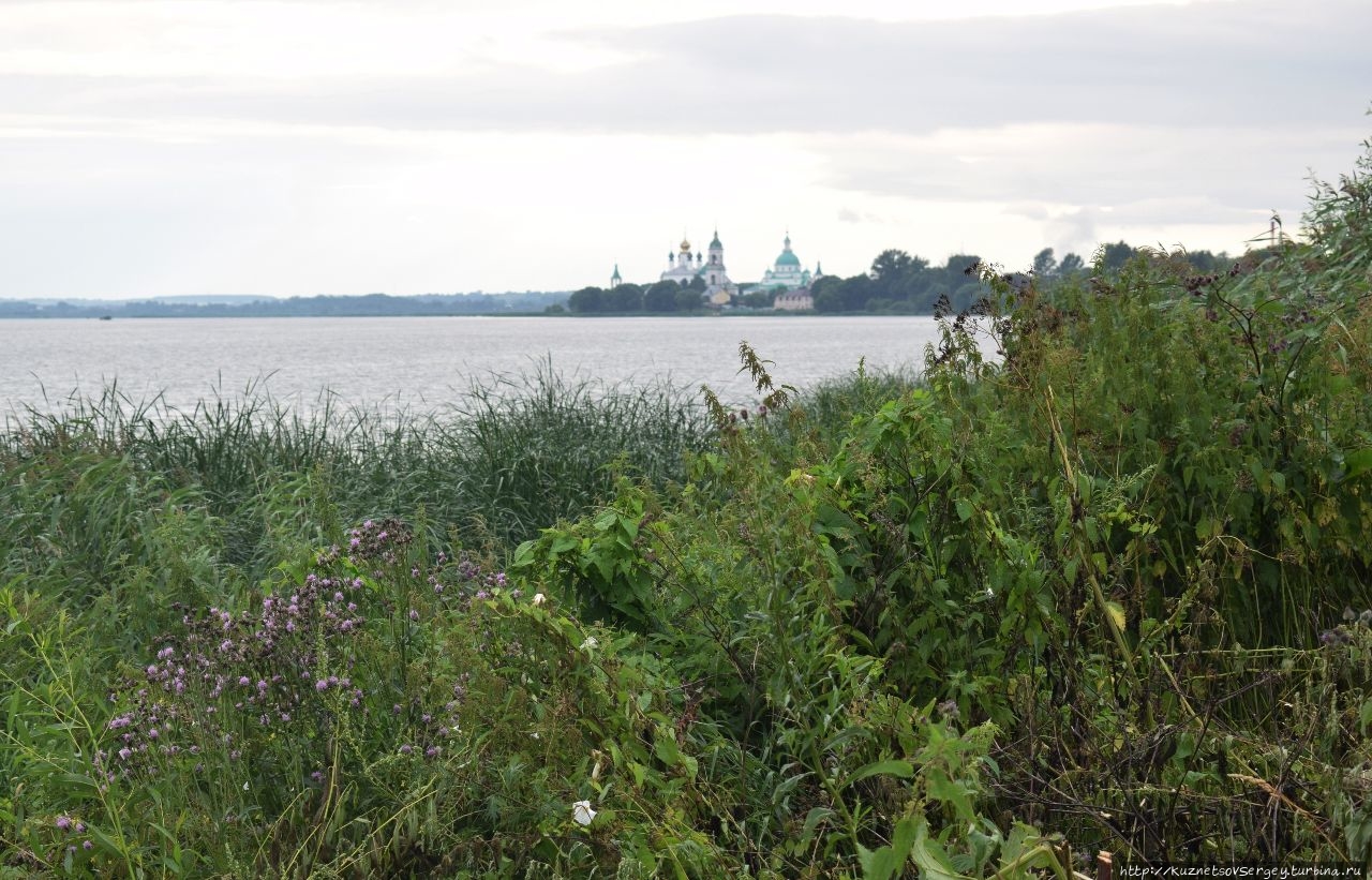 Когда я посещал Ростов с автобусной экскурсией в советские времена, нас подвозили к этому монастырю. Даже сохранились несколько фотоснимков его стен и башен. Туристы на своих машинах, конечно, имеют возможность подъехать к нему. Я же был без машины, и совершил прогулку от Кремля пешком. С одной стороны, это утомительно (особенно после полного экскурсионного дня на ногах). Но, с другой стороны, это позволило мне насладиться видами на озеро!