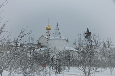 Озеро Неро – одно из древнейших пресноводных озер на территории России. Из-за снегопада всё было в непроглядной дымке, кругом были неземные пейзажи.