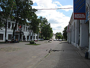Обыкновенное чудо над гробом Исидора Блаженного..После мы уже направились в кремль, ведь не посмотреть на него хоть мельком — практически туристическое преступление! Кстати, интересно становится уж на подходе, так как вплотную к стенам расположены торговые ряди и городские постройки. Старые улицы выглядят примерно так (чем ближе к кремлю, тем более ухожено и озеленено). Вечером тут, конечно, не очень комфортно — много пьяных.