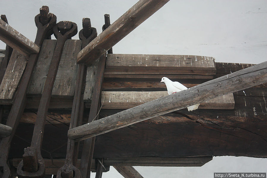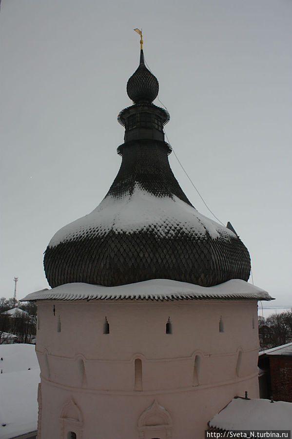 Поднимаемся на звонницу: огромные колокола, под которыми может поместиться человек. С одной стороны — вид на огромное пространство озера Неро, с другой можно найти церковь Спаса на Торгу, где-то вдалеке виднеется красивейший Спасо-Яковлевский монастырь, и, конечно, вблизи можно рассмотреть стены и башни кремля