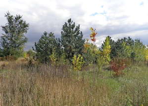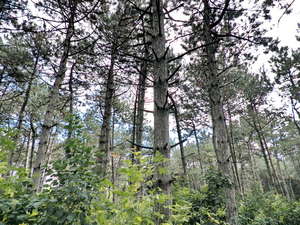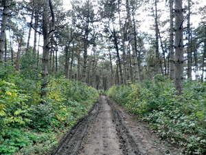 Ширина хвойника небольшая, метров сто. Дальше идут полянки, переходящие в смешанный лес.