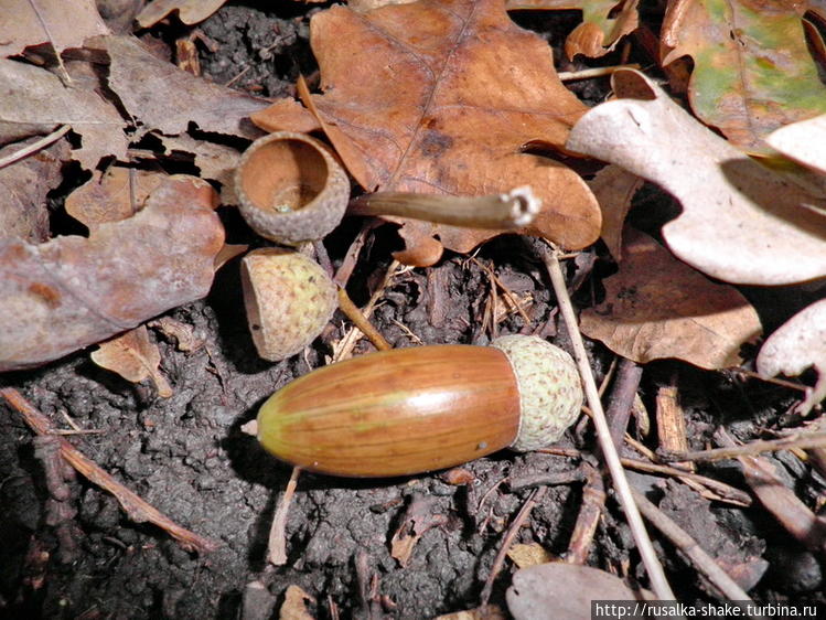 А какой рядом дубовый лес шикарный! Возле кряжистого дуба грациозно, не скрываясь, рассыпаны желуди.