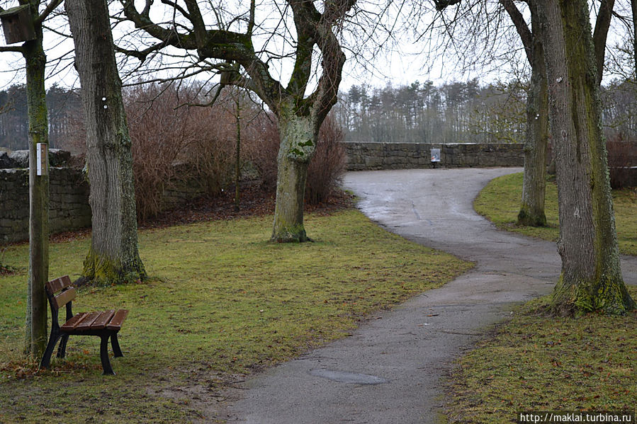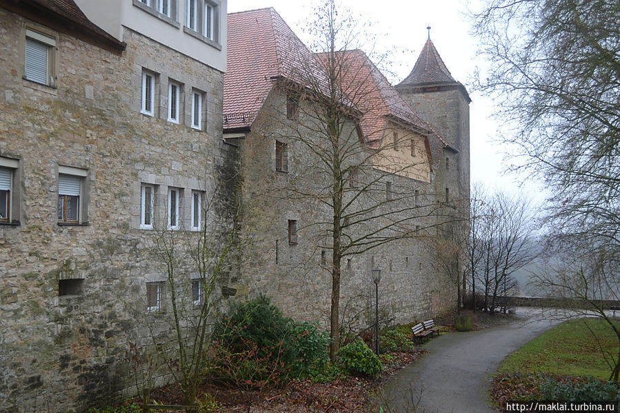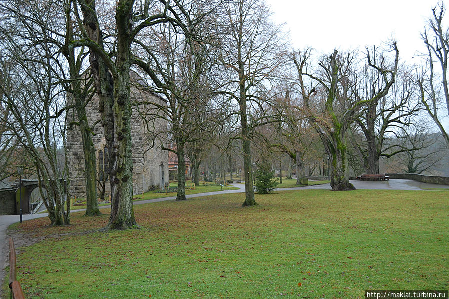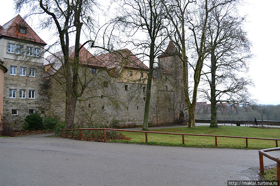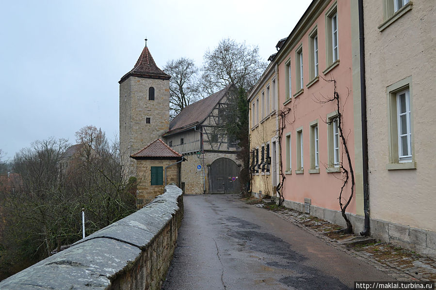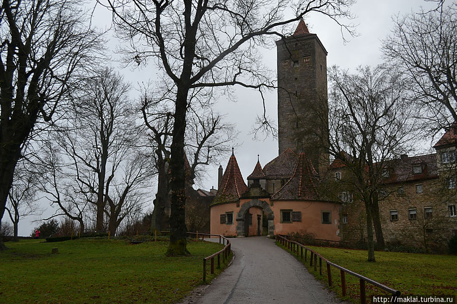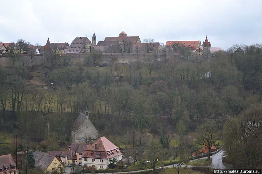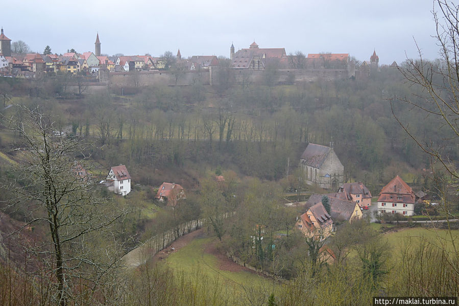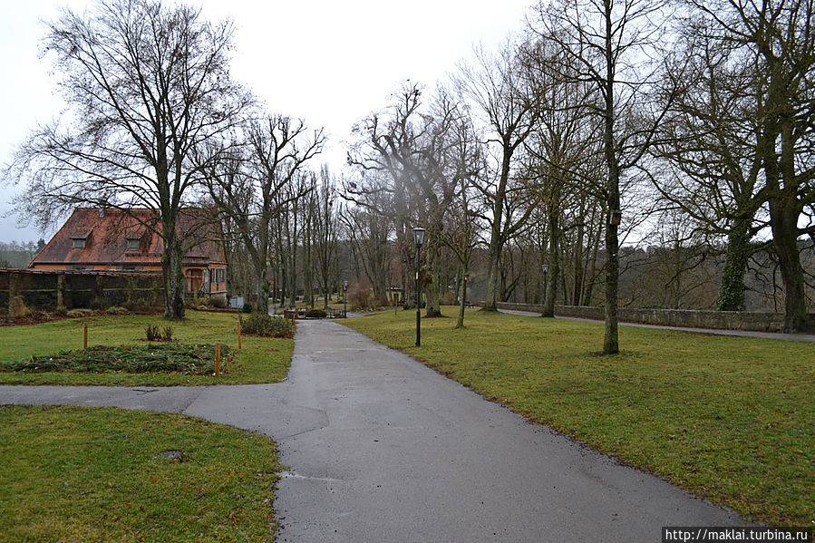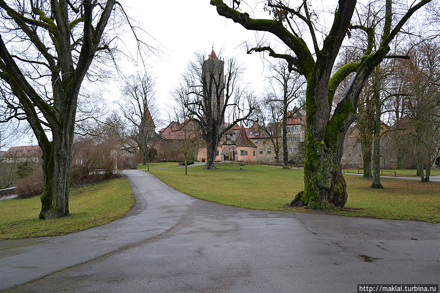 Ну а если не поленитесь подойти к парапету Крепостного Сада, то вам откроется чудеснейший вид на окружающие холмы и долину реки Таубер. Так, перед часовней Святого Власия стоит посмотреть налево, чтобы из южной части парка полюбоваться через лежащую впереди часть города великолепным видом на дальнюю Штёберлейнскую башню, небольшую Кобольцелльскую церковь, массивный двухъярусный мост и водяные мельницы, 24 из которых в свое время принадлежали Ротенбургу.