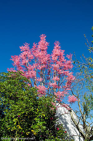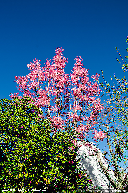 Вот такое красивое дерево, похожее на сакуру, расло прямо рядом с дорогой, но точного его названия я не запомнил.