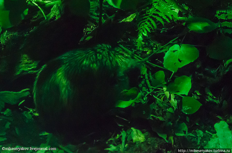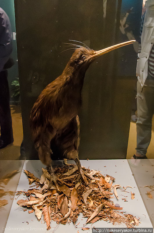 Как я уже писал выше, киви птица ночная, и в этом центре они содержатся в специальных темных помещения за стеклом. Фотографировать живых птиц запрещено, но на одну фотографию мне все-таки удалось уговорить местную «девочку-стафф». На фотографию было лишь 5 секунд, ну и конечно, ничего хорошего не вышло. :-)
