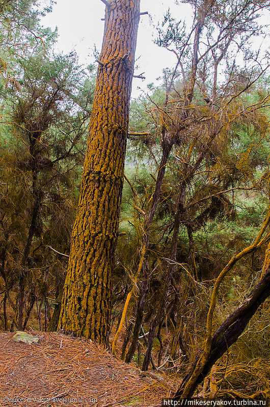 На деревьях здесь оседает много различных минеральных осадков и от этого они обретают порой очень причудливую окраску.