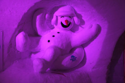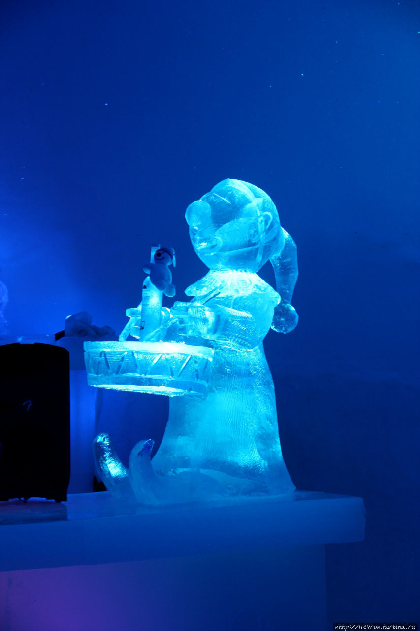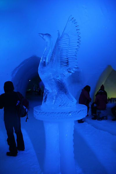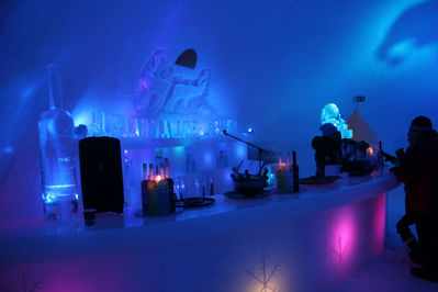 В отеле так же располагается ледяной бар и ледяной ресторан. Все в баре сделано из снега и льда — столы, скамейки, барная стойка и даже стаканы.