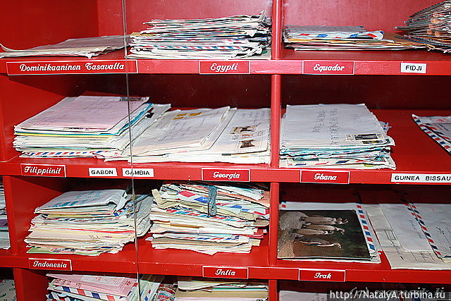 Интересно было посмотреть на стеллаж с аккуратно разложенными письмами со всего света – из Индии и Вьетнама, России и Монте-Карло, Америки и Австралии, Грузии, Черногории, Гвинеи-Биссау и тд. и тп. Отовсюду Главному Санте пишут дети и это очень трогательно).