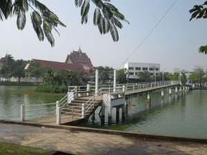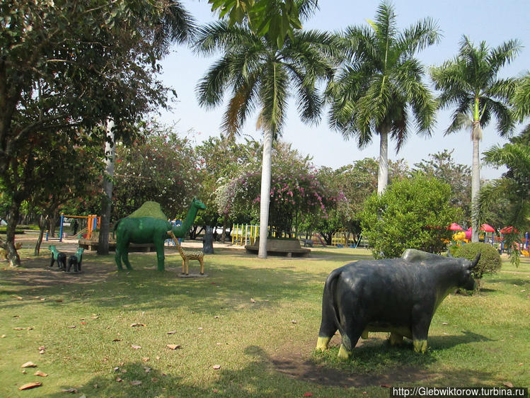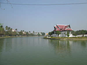 Ваты можно смотреть в любом тайском городе, музей в Рой Ете был закрыт, в итоге , главной городской достопримечательностью для меня там стал парк. Он расположен на острове в центре города, вокруг пруд Плай Чай. С западного берега отель, с южного аквариум, с востоного всякие конторы, с северного дорога к рынкам.