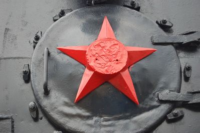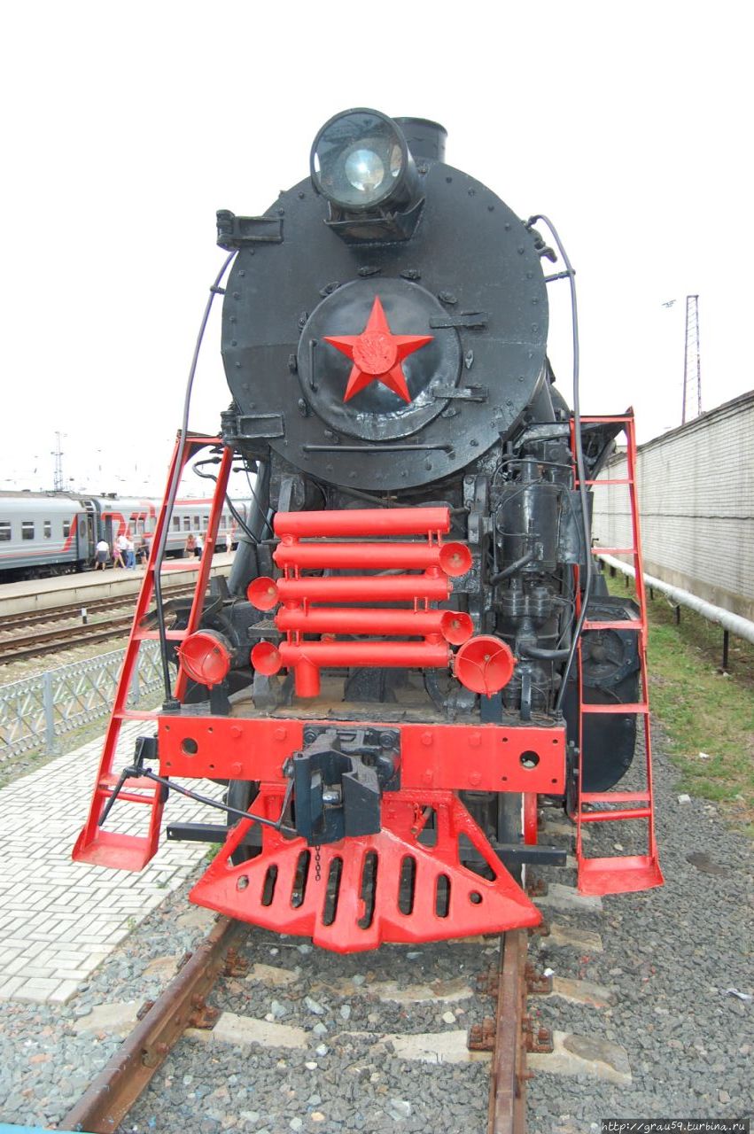 Но когда паровоз реставрировали, то под слоем краски на красной звезде был найден сбитый барельеф Ленина и Сталина.
