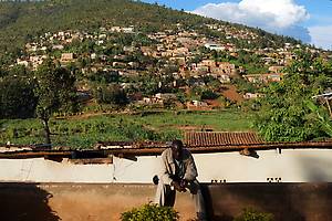 Руанда вполне соизмерима с Подмосковьем, между прочим. По размеру примерно в полтора раза меньше, а по населению – чуть-чуть больше. Это без учета Москвы, не переживайте. Но, тем не менее, вероятно, самая густонаселенная страна Африки. А пейзажи здесь – живописные зеленые холмы. Ну, как где-нибудь под Дмитровом у нас, только чуть повыше. Поэтому любая поездка в междугородном автобусе по Руанде – это практически бесплатный фототур, только успевай кнопку “пуск” нажимать, правда, на ходу, и место надо у окна занять. Но так то я на автобусе, а вы можете и на машине поехать, оно будет и удобнее и останавливаться можно.
