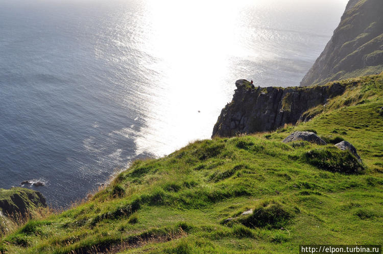 Вот здесь-то и живут птицы, здесь у них – птичий базар. То тут, то там, прямо на уступе замечаем людей – десятки фотоохотников с длиннющими объективами примостились над бездной, то и дело вытягивая шеи в поисках фотодобычи.