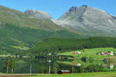 Наша дорога к острову Рунде началась от фантастически красивого места. Поднявшись от Гейрангера горным серпантином и протиснувшись через скалистое ущелье, дорога вынырнула в долину. Между величественными холмами расстилалось озеро – совершенно прозрачное с ровной зеркальной поверхностью.