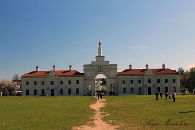 Красиво смотрится, не правда ли? Это вид въездной арки и примыкающих к ней боковых флигелей.