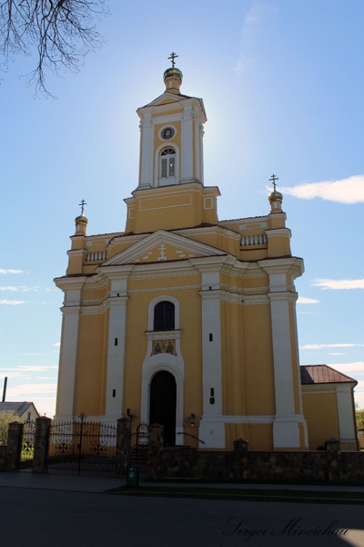 Ну а затем, как многим известно, Первая Мировая Война, Великая Октябрьская Социалистическая Революция, Брестский мир, Рижский мир, пакт Молотова – Риббентропа, Великая Отечественная война, распад СССР и возникновение Республики Беларусь. Все эти события пережила эта церковь, как и костёл, который расположился практически напротив её.