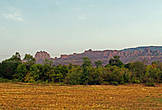 Только еще минуту назад мы петляли по заросшему густым лесом горному серпантину, как о-па, и мы в бескрайней долине. Убранные поля, река впереди... Дорога свернула налево и мы несколько километров проехали среди болгарских краевидов — слева возвышались красные горы массива "Белоградчиские скалы", справа — долина с сельхозполями и "тихою речушкой без названья"...
