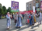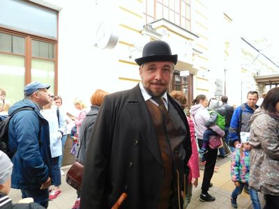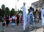 Повод для народных гуляний ещё тот – День города был пристегнут к Году театра. Шекспир, кажется, сказал: «Весь мир – театр, а люди в нем – актёры! Такого карнавала актёров – профессиональных и любителей, пенсионеров и малышей, местных и приезжих из Тутаева, Коми и Китая да с поклонниками до кучи – лично я, прожив в Рыбинске 33 года, 3 месяца и 3 дня, прежде не видал. Сбился со счёту, сколько мимо меня прошло Лис Алис с Котами Базилио, Карабасов Барабасов, Царевен Лягушек, Иванушек Царевичей на пару с Иванушками Дурачками и прочих персонажей русских и нерусских народных сказок и материализовавшихся фантазий постановщиков, вроде «зеркальных полицейских».