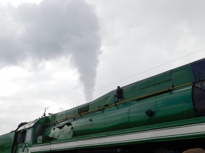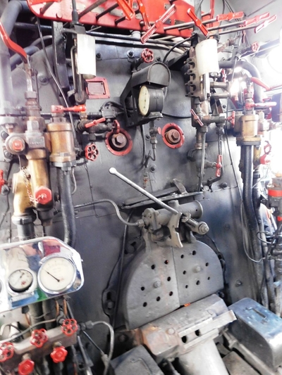 Внутри куча всяких приборов со стрелками.За их показаниями внимательно следят люди – никакой электроники там нет и в помине. Приводит локомотив в движения пар. Он же уходит в гудок, вырываясь клубящимся столбом из свистка.