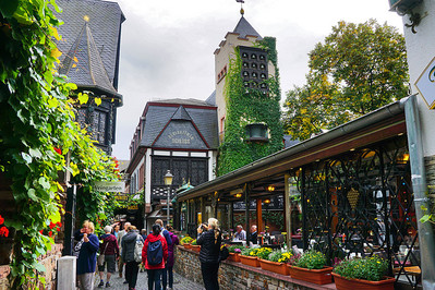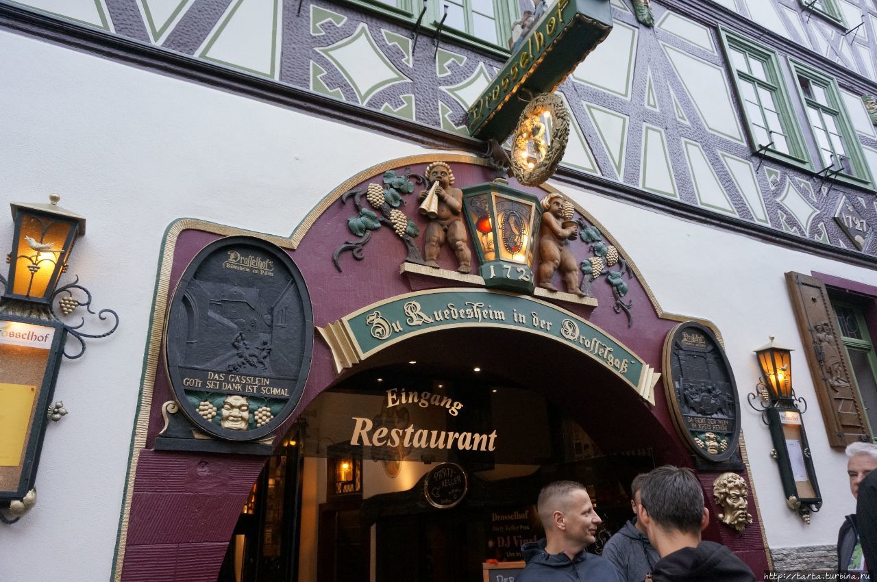 К примеру, самая известная в городе улица Drosselgasse (дословно переводится как «переулок Дроздов»). Она протянулась всего лишь на 144 м при ширине 3м, но живая музыка и атмосфера бесконечного праздника там с утра и до вечера. Еще песенка, сочиненная однажды владельцем одного из погребков, звучавшая даже по радио, создала улице «веселую» репутацию. Да после вина все вокруг кажется ярче и насыщеннее, как тут не веселиться.