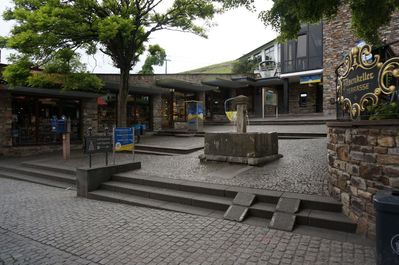 фонтан со статуей «Пьяного Яна» — покровителя Рюдесхайма и тот с бокалом вина.